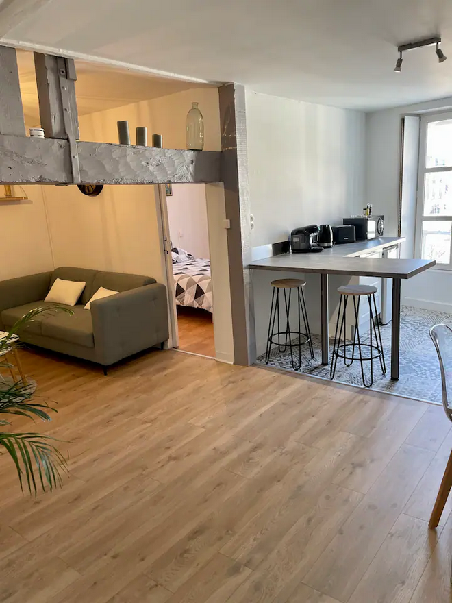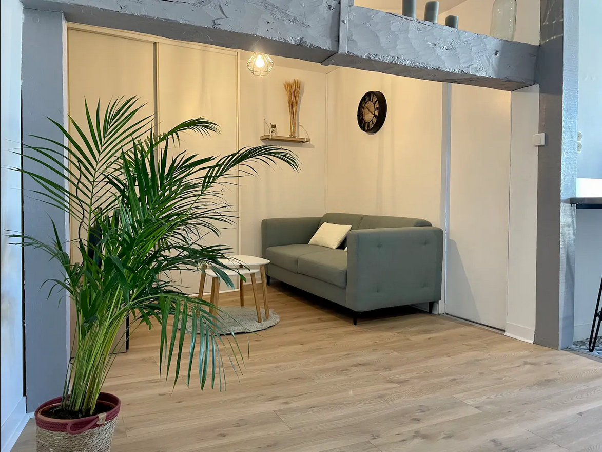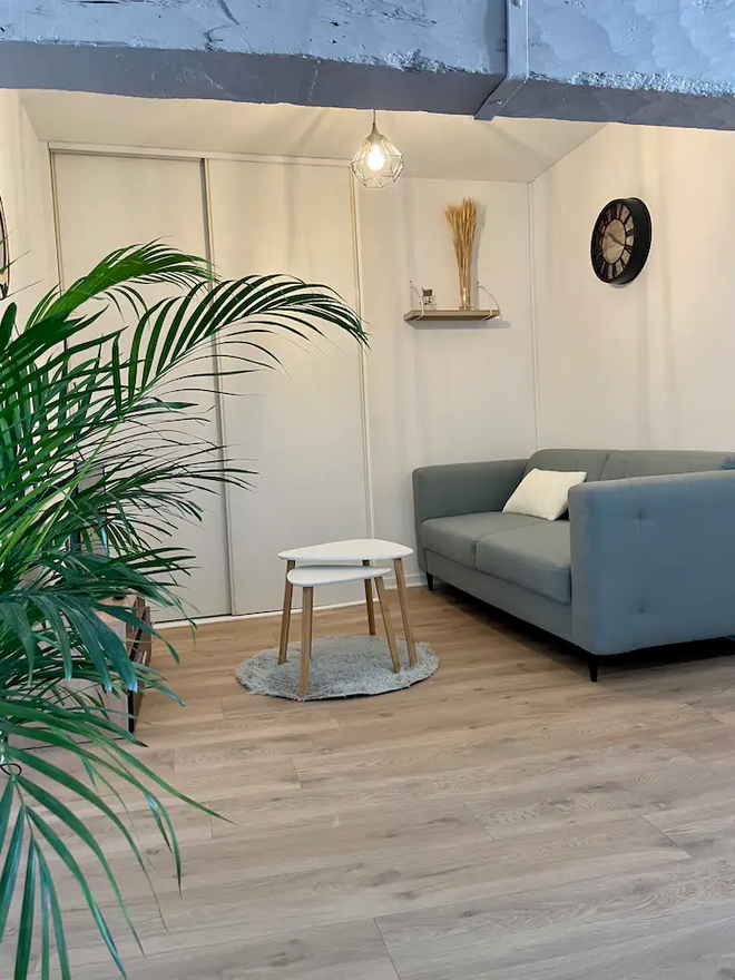 Salon (canapé convertible), TV amazon prime, Netflix, borne JBL